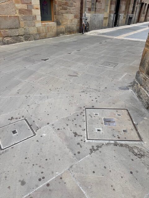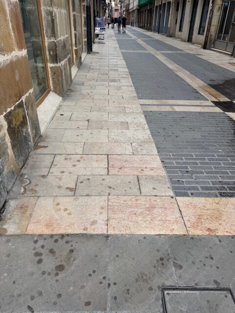 Dicen que Durango siempre ha sido un pueblo cuidado, limpio y orgulloso de su patrimonio. Pero, paseando hoy por sus calles, uno se pregunta: ¿será que la nueva estética urbana consiste en manchas de aceite decorando las aceras de nuestras calles? ¿O que todo alde zaharra y el pórtico de Andra Mari lucen mejor salpicado con gotitas oscuras que recuerdan más a un taller mecánico que a una joya histórica?