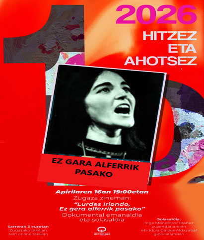 Apirilaren 16an Durangoko Zugaza zineman izango dugu dokumentala ikusteko aukera, Gerediaga Elkarteak eta Hitzez eta Ahotsez taldeak antolatuta.