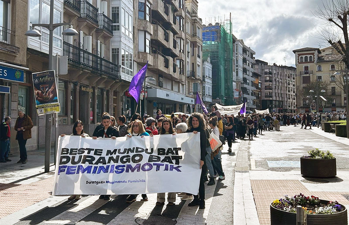 Una marea humana –una de las manifestaciones más numerosas que se han vivido en los últimos años– recorrió ayer las calles de Durango con motivo del 8M y como respuesta incontestable al auge de los discursos en contra de la defensa de la igualdad.