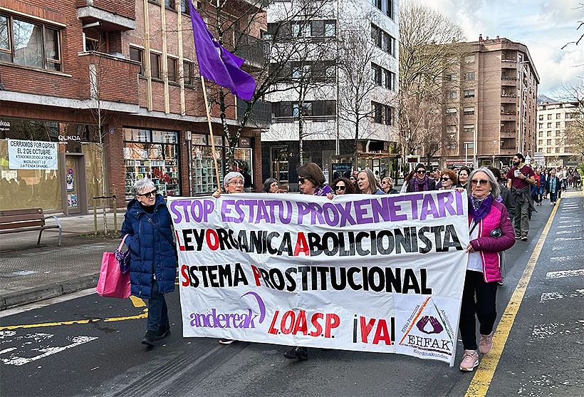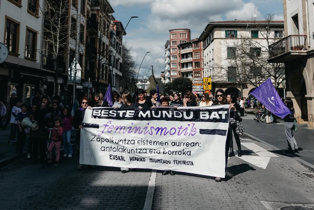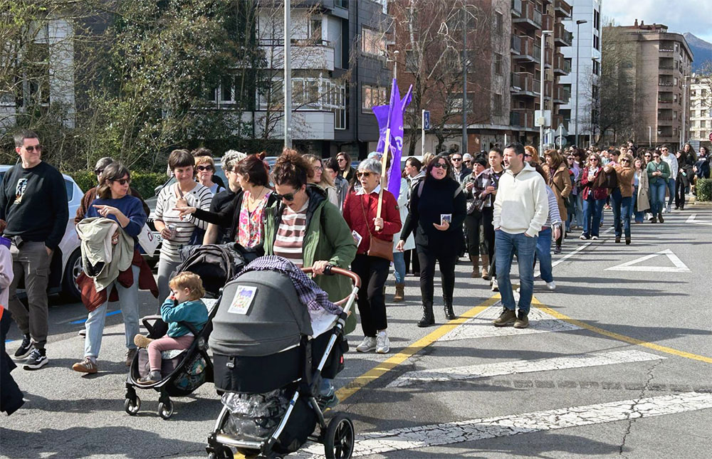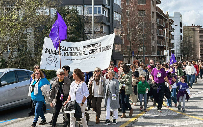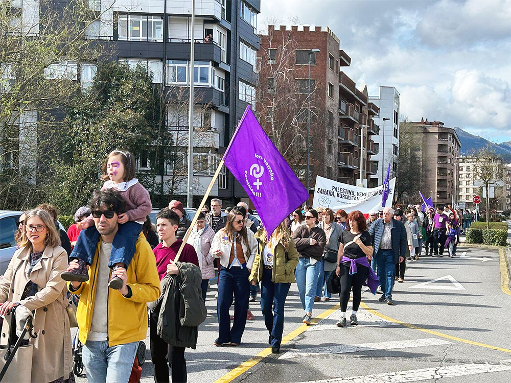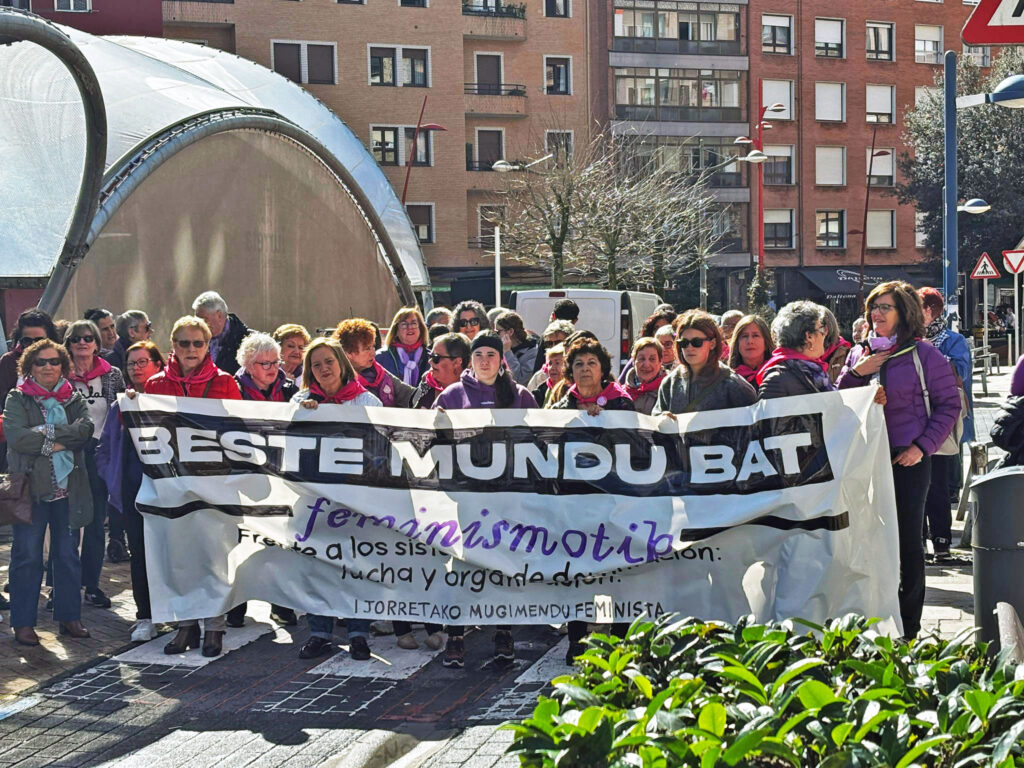 Bajo el lema ‘Beste mundu bat feminismotik. Otro mundo desde el feminismo’, la marcha convocada por Durangoko Mugimendu Feminista partió de Ezkurdi a las 12.30 horas y, unos 40 minutos después, llegó al pórtico de Andra Mari donde se leyó un manifiesto instando a “la lucha y la organización frente a los sistemas de dominación”.