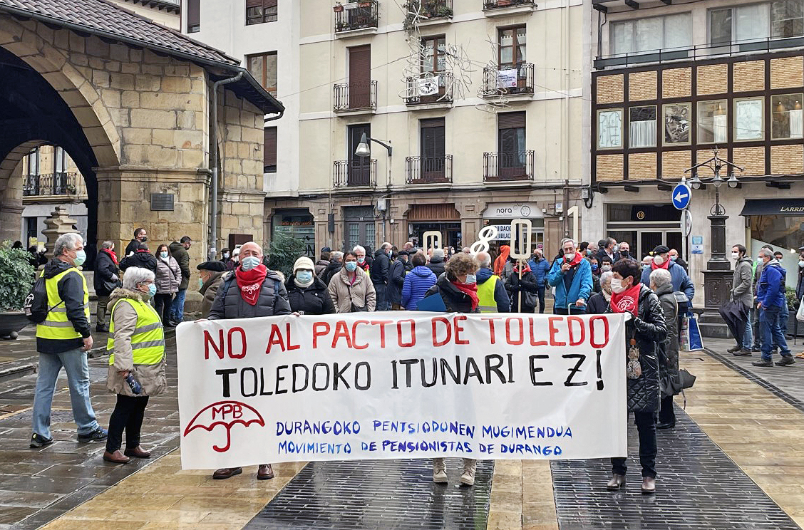 El Movimiento de Pensionistas también rechazan los recortes del Pacto de Toledo, que “ha rechazado nuestras principales reivindicaciones”, y pedirán al Gobierno español que derogue la ampliación del periodo de cálculo de las pensiones de 15 a 25 años, no prolongue la edad de jubilación a los 67 y no penalice la anticipada.