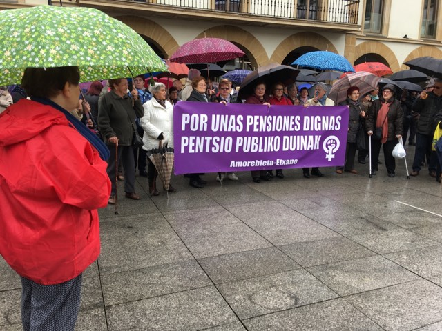 Tras el parón de Semana Santa, los pensionistas han retomado sus concentraciones en demanda de unas pensiones dignas. Decenas de personas se sumaron ayer a las protestas convocadas en Durango y Amorebieta pese a la lluvia.