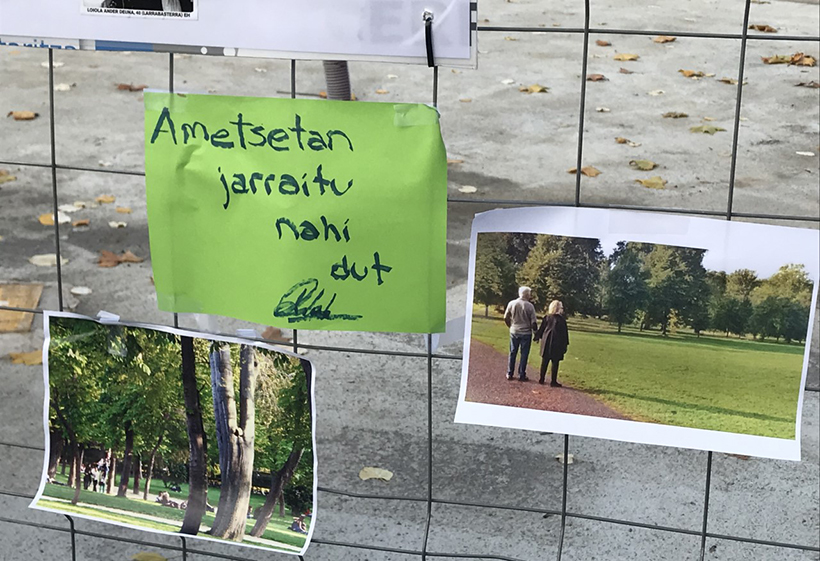 Hay vecinos y vecinas de Durango que “quieren seguir soñando” con un municipio en el que el cemento no imponga su particular dictadura urbanística. Para recordar que su lucha sigue viva y que no tienen intención de rendirse, han recreado esta mañana un altar ‘in memoriam’ de las zonas verdes que reclaman junto a los terrenos donde Gobierno vasco y Ayuntamiento proyectan construir cinco torres de viviendas. “Berdeguneak gogoan”, podía leerse en el letrero más grande.