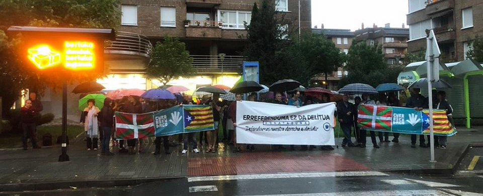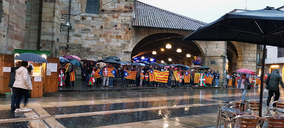 Cientos de personas salieron ayer a la calle en Durangaldea para expresar su indignación por la sentencia dictada por el Tribunal Supremo contra los líderes independentistas catalanes. Mostrando ikurriñas y esteladas, quisieron dejar claro que “‘¡Referéndum no es delito!” y que hay que defender “nuestro derecho a decidir”.