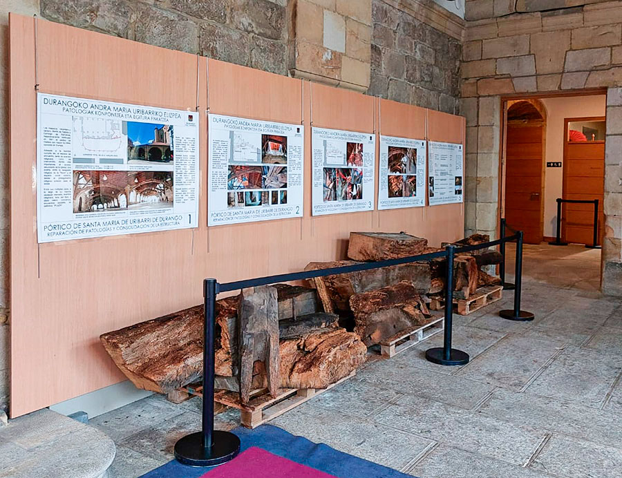 expo-rehabilitacion-portico-andra-mari-santa-maria-durango-san-agustinLas obras de rehabilitación del pórtico de Santa María de Durango pueden conocerse en detalle gracias a la exposición que acoge el vestíbulo de San Agustin kultur gunea durante este mes. La muestra se compone de paneles informativos junto a algunas de las piezas que se han sustituido.