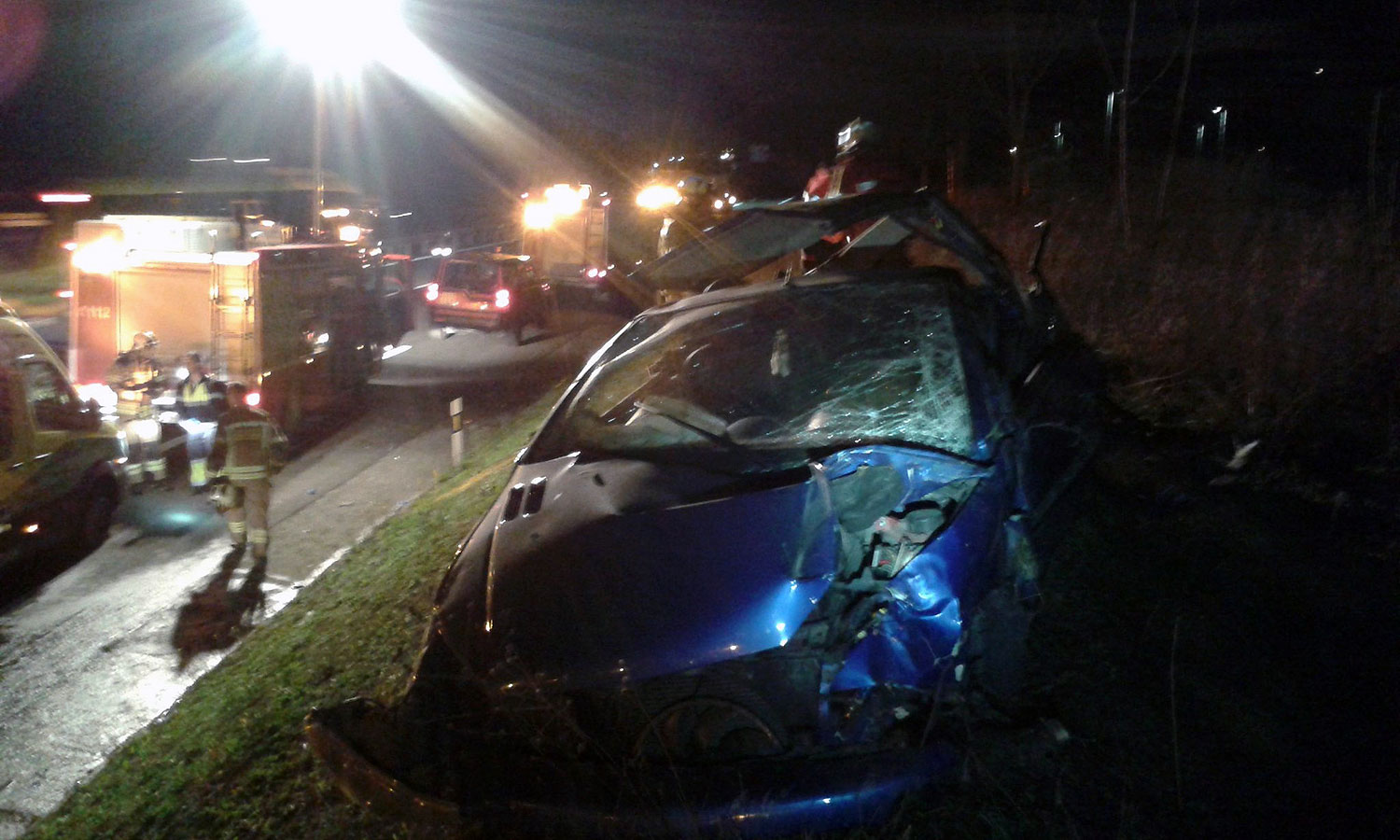 El coche siniestrado en el accidente de la AP-8 en Zaldibar (Fotos@BomberosBizkaia)