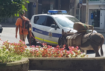 Curiosas fotografías publicadas por el concejal Julián Ríos de un turista extranjero que ha llegado al municipio en burro ...
