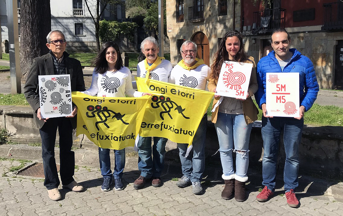 La plataforma Ongi Etorri Errefuxiatuak celebrará el próximo 5 de mayo un acto colectivo y solidario, conocido como ‘El abrazo de los pueblos, de las personas y de los Derechos Humanos’,un llamamiento por el derecho a vivir y a migrar con dignidad frente al neofascismo. La abrazada principal en Euskal Herria tendrá lugar en Durango y simultáneamente también se llevará a cabo en otras ciudades europeas.