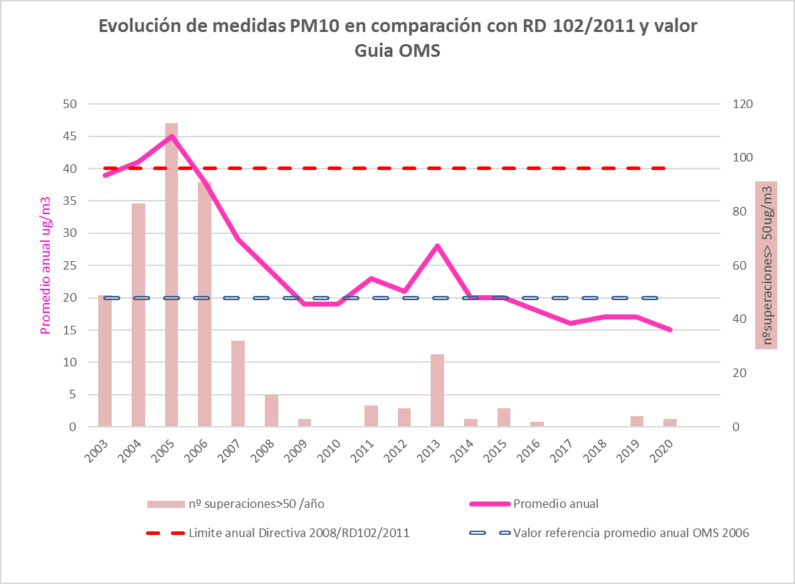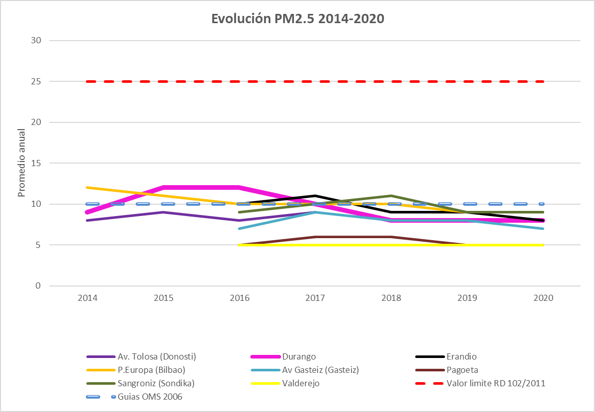Junto a la normativa europea, la medición del Gobierno vasco tiene en cuenta las recomendaciones de la Organización Mundial de la Salud (OMS), valores que sirven de referencia para orientar las políticas de reducción de determinados contaminantes y que se han endurecido en 2021.