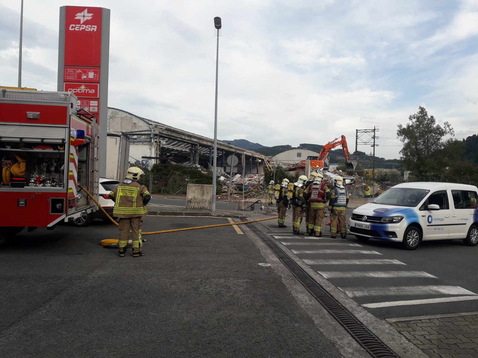 Según ha podido saber durangon.com, una excavadora que estaba demoliendo un pabellón junto a la gasolinera de Berriz, ha roto una conducción de gas. Afortunadamente, no se han registrado heridos.