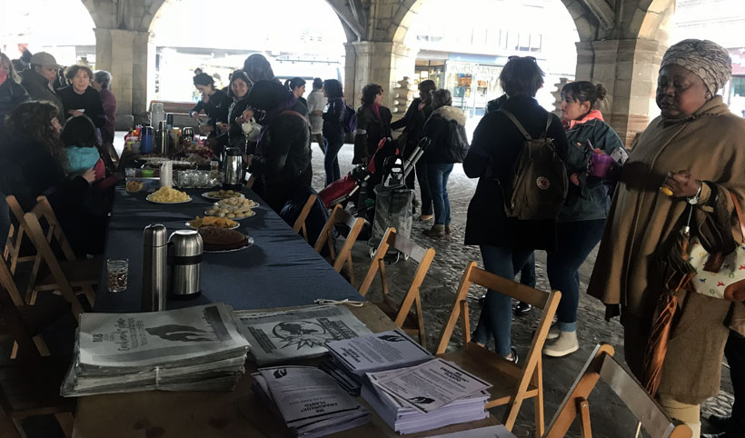 Mujeres autóctonas, marroquíes y africanas han compartido dulces, café y té junto a una mesa en la que se ofrecía información sobre la huelga y las movilizaciones previstas por la Plataforma Feminista.