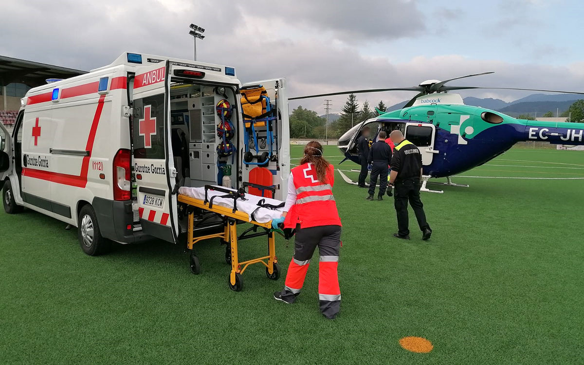 El accidente fue sufrido por un abadiñarra hacia las 18.00 horas de ayer. Una ambulancia de apoyo de la Cruz Roja trasladó al varón al campo de fútbol de la localidad para ser recogido por la aeronave.