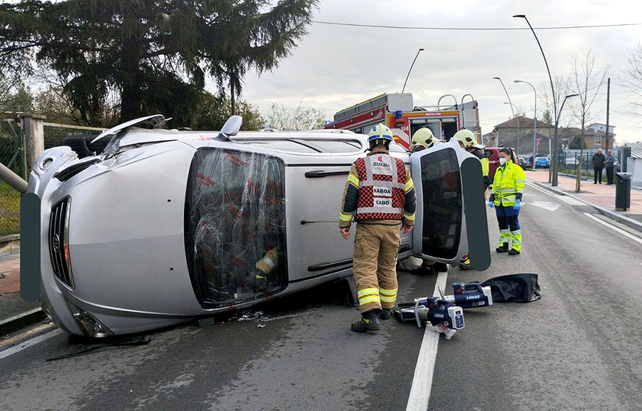 Una persona ha resultado herida esta mañana en el barrio zornotzarra de Tantorta después de volcar su vehículo. Tras ser extraída del turismo por los bomberos, ha sido trasladada al hospital de Usansolo.