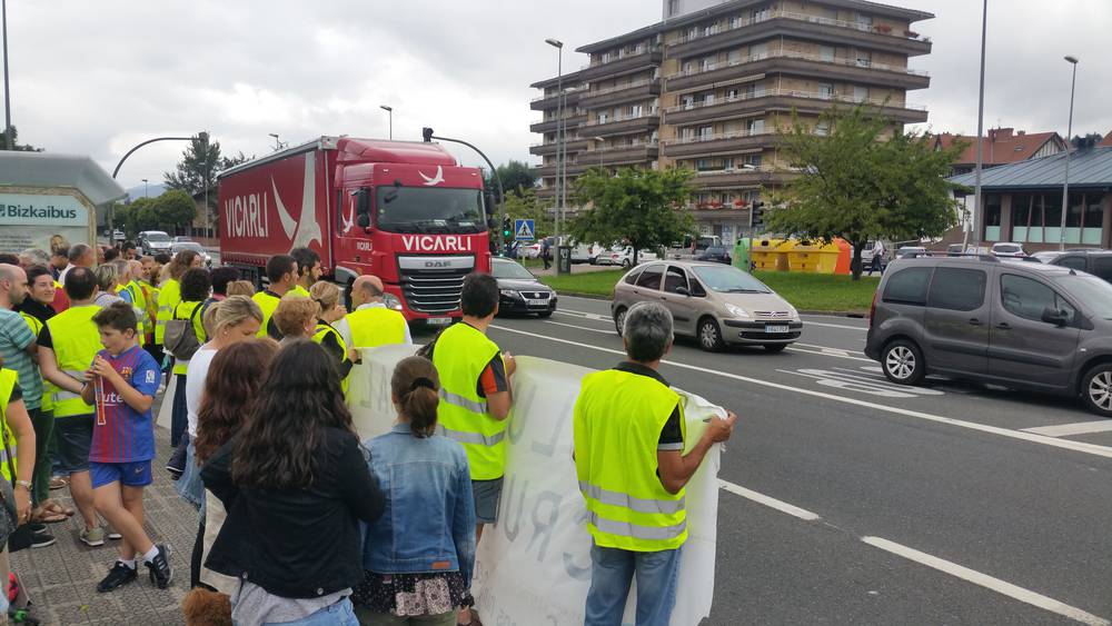 Alrededor de un centenar de vecinos y vecinas de Muntsaratz se concentraron ayer en el tramo de la N-636 que une Abadiño y Elorrio para reclamar una “solución segura e inmediata” a los problemas de acceso que hay al barrio.