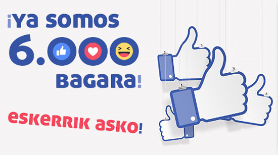 Facebook-6000Un medio de comunicación solo puede salir adelante gracias a la confianza de su audiencia. Y si de algo podemos enorgullecernos en durangon.com es, precisamente, de vuestro apoyo diario. Tras un 2017 en el que hemos disfrutado de un espectacular aumento de audiencia —batiendo nuestro propio récord histórico de visitas mensuales en varias ocasiones— comenzamos este año con un nuevo hito: ¡hemos alcanzado los 6.000 seguidores y seguidoras en Facebook!